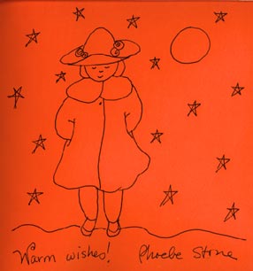 Girl with hat on the endpapers of When the Wind Bears Go Dancing (Drawing is at 50 percent of original)